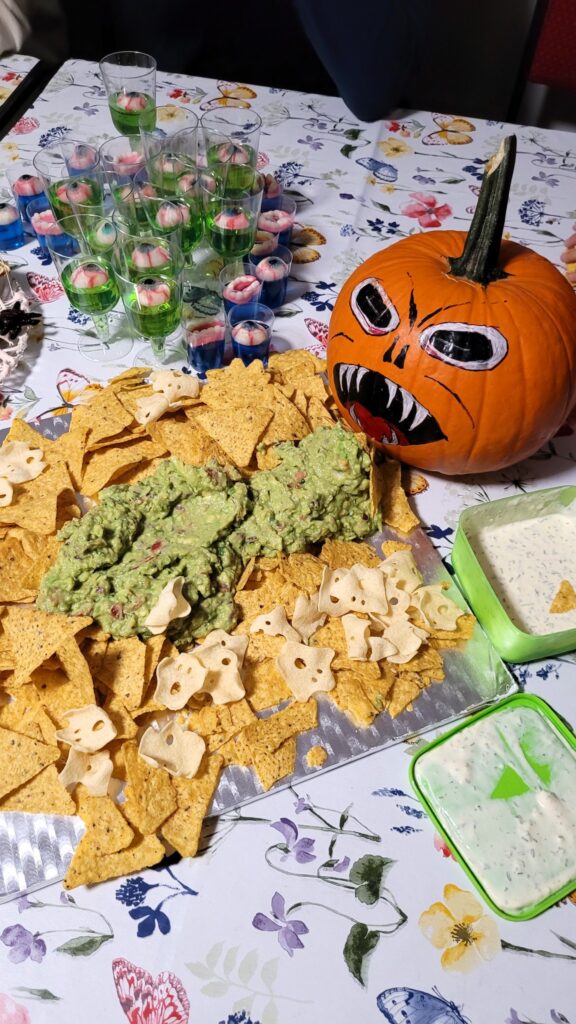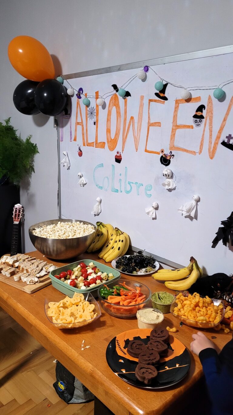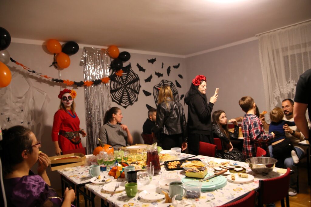 Bo tak działa nasza społeczność. Stół uginał się od halloweenowych przekąsek. Pyszna pizza. Przebrania. Dobra energia.