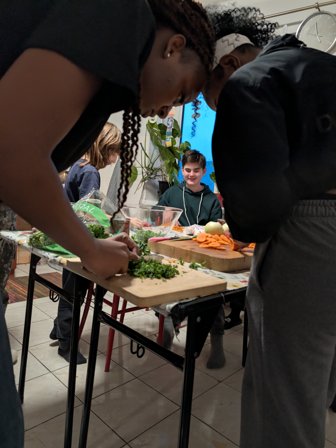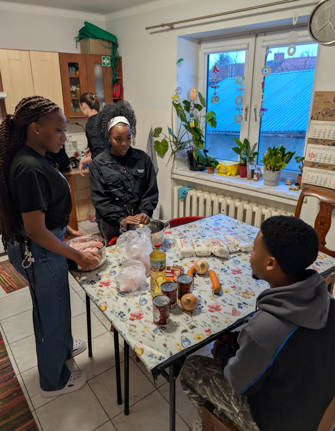 Ostatnio odwiedziła nas też Jubi — koleżanka Ramseya i Precious — i poprowadziła dla nas warsztat kulinarny. Razem z dziećmi przygotowaliśmy sadzę — tradycyjne danie z Zimbabwe, które z naszą sadzą kominową ma wspólną jedynie nazwę. Było krojenie warzyw, mieszanie, próbowanie — i rozmowy o tym, co jemy w Polsce, a co na drugim końcu świata. Edukacja międzykulturowa w najczystszej, najbardziej smakowitej formie.